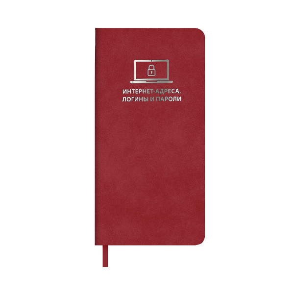 Книжка для зап. интернет-адресов, логинов и паролей 72*142м Феникс+ "Нубук" красный 57890