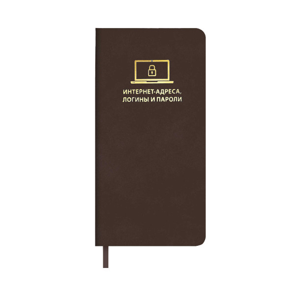 Книжка для зап. интернет-адресов, логинов и паролей 72*142м Феникс+ "Нубук" коричневый 57888
