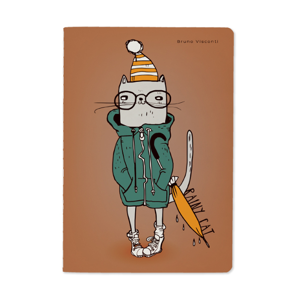Тетрадь 40л А5 клетка/сшивка "Rainy cat" картон, рисунок 7-40-001/107 Bruno Visconti