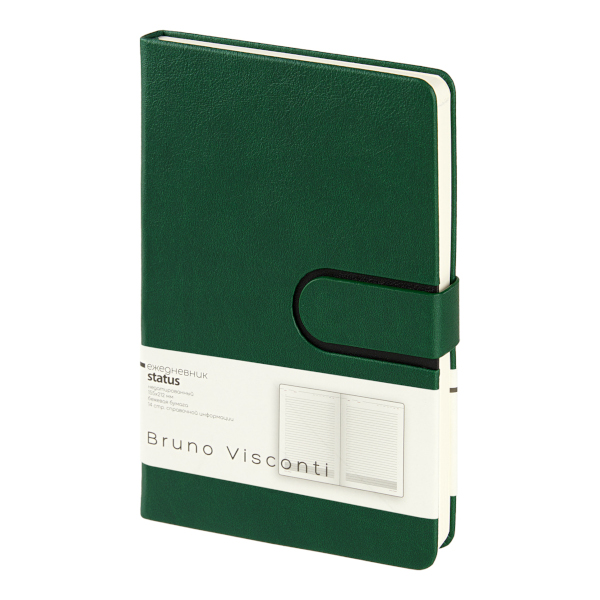 Ежедневник А5 не дат Bruno Visconti "Status" тв.обл., иск.кожа, зеленый, магнит. клапан 3-786/04