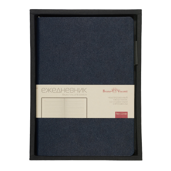 Ежедневник А5 не дат Bruno Visconti "Boston" т.-синий, линейка, иск. кожа, серый обрез 3-228/17