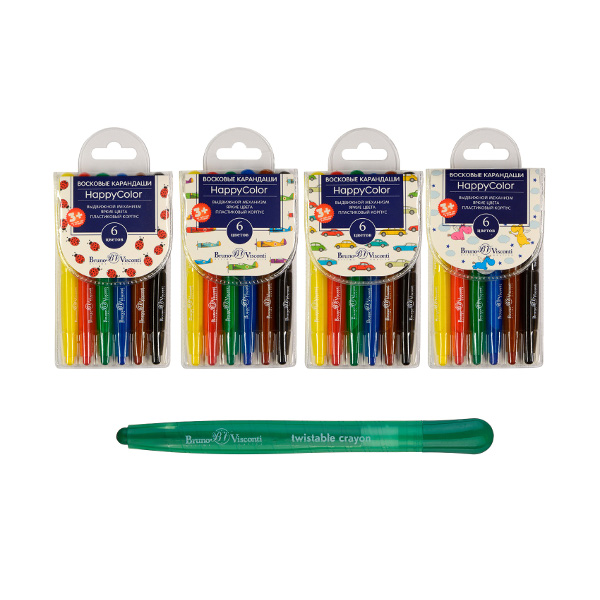 Мелки восковые Bruno Visconti "Happy color" 6цв, выкручивающиеся, коробка-пенал 31-0003