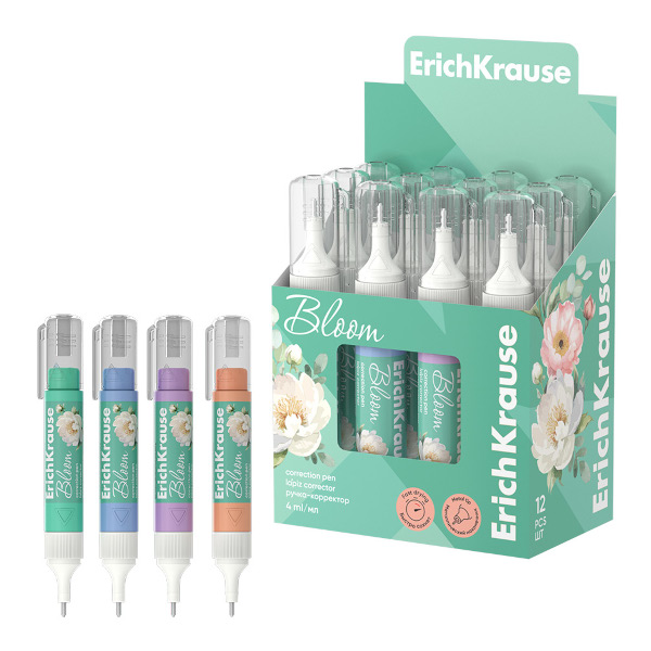 Корректор шариковый Erich Krause "Pastel Bloom" 4мл, метал. наконечник, ассорти 61928