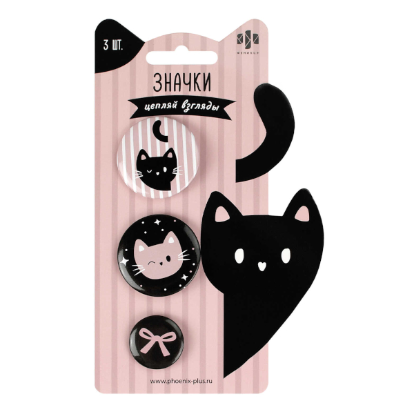 Набор значков закатных "Розовые коты" d=37/25мм, металл, 3шт 71105 Феникс+