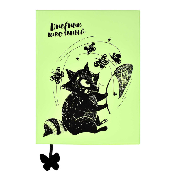 Дневник 1-11 кл. мягк. обл. "Енот с сачком" картон/ПВХ, универ.шпарг. 62285 Феникс+