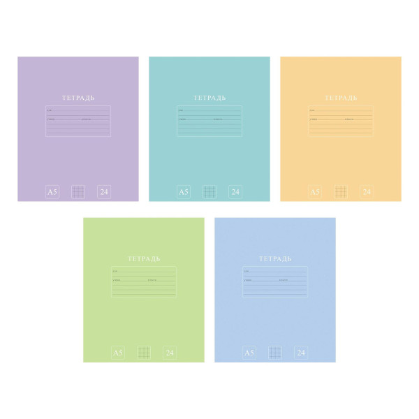 Тетрадь 24л А5 клетка "PUREcolour" картон, ассорти 24Т5C1 Hatber