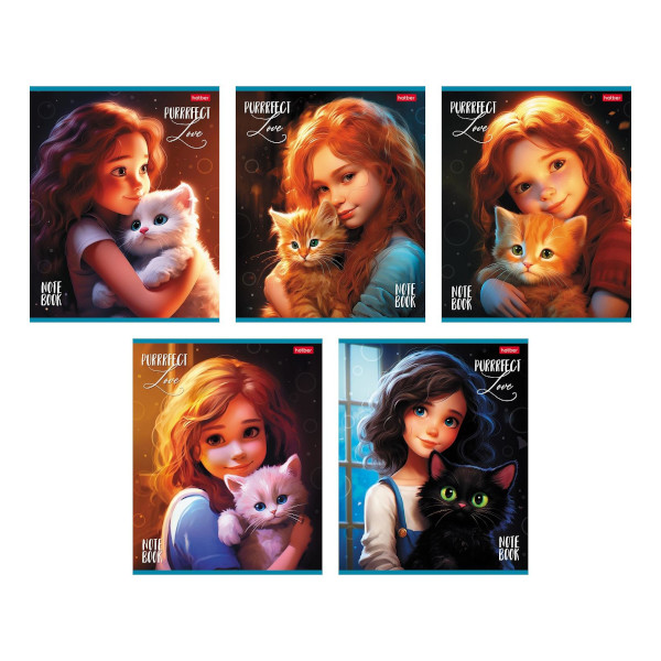Тетрадь 48л А5 клетка "Девочка и котик" картон, ассорти 48Т5лВ1 Hatber