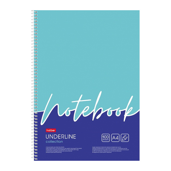 Тетрадь 100л А4 клетка/гребень "Underline" картон, рисунок, перф. 100Ткм4В1гр_28145 Hatber