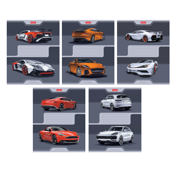 Тетрадь 24л А5 клетка "Автомобили" картон, ассорти 24Т5С1 Hatber