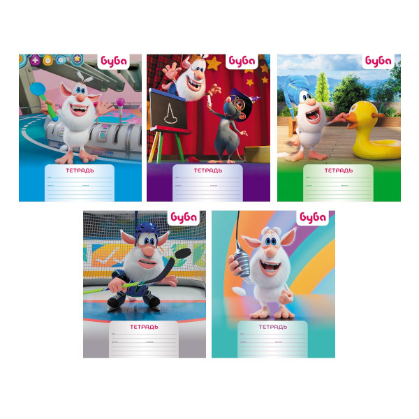 Тетрадь 12л А5 линейка узкая "Буба" картон, ассорти 12Т5В7 Hatber