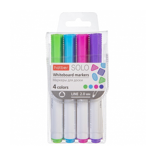 Набор маркеров для доски 2мм, спирт.осн., пулевид, ассорти 4шт "Solo Fun color" WB_066139 Hatber