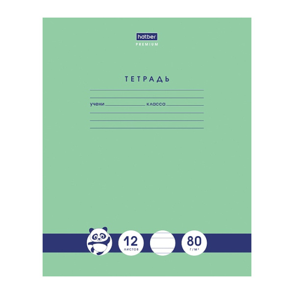 Тетрадь 12л А5 линейка узкая "Панда-тетрадь" картон, зеленый 12Т5A7_23630 Hatber
