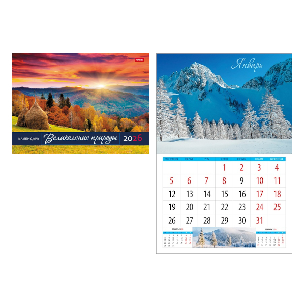 Календарь настен. перек. 2026г "Великолепие природы" 34*25см, скоба 12Кнп3_34488 Hatber