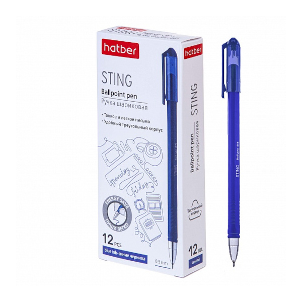 Ручка шар. масл. осн. 0,5мм, синий, игольч., синий корп. "Sting" BP_067932 Hatber
