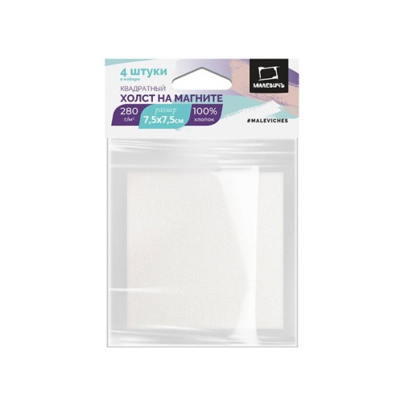 Набор холстов-магнитов "Квадрат" 7,5*7,5см, 280г/м2, 4 шт, 195230 Малевич