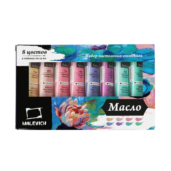 Набор красок масляных худож. Малевичъ "Tician. Пастельные тона" 8 цв., 12мл в тубе 520003