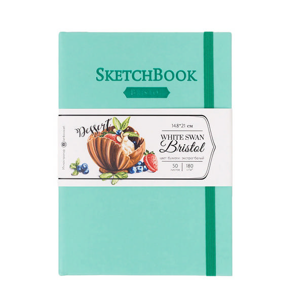 Скетчбук для маркеров А5 50л, 180г/м2, сшивка "Bristol Touch" мятный, резинка 401228 Малевичъ