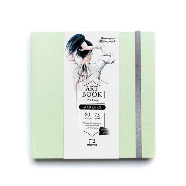 Скетчбук для маркеров 150*150мм 80л, 75г/м2, склейка "Fashion" мятный, резинка 401121 Малевичъ