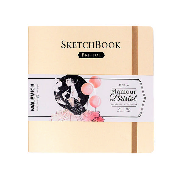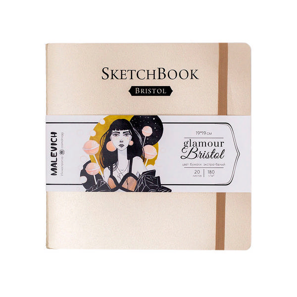 Скетчбук для маркеров 190*190мм 20л, 180г/м2, сшивка "Bristol Glamour" кремовый, рез 401225 Малевичъ