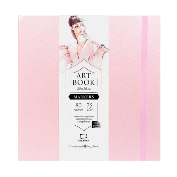 Скетчбук для маркеров 200*200мм 80л, 75г/м2, склейка "Fashion" розовый, резинка 401124 Малевичъ