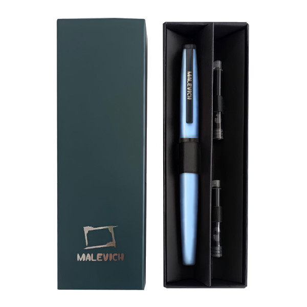 Ручка перьевая Малевичъ с конвертером, индиго/черный, кругл.корп, голубой 0,4мм 196422
