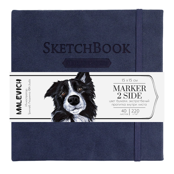 Скетчбук для маркеров 150*150мм 40л, 220г/м2, сшивка, индиго, резинка 401146 Малевичъ