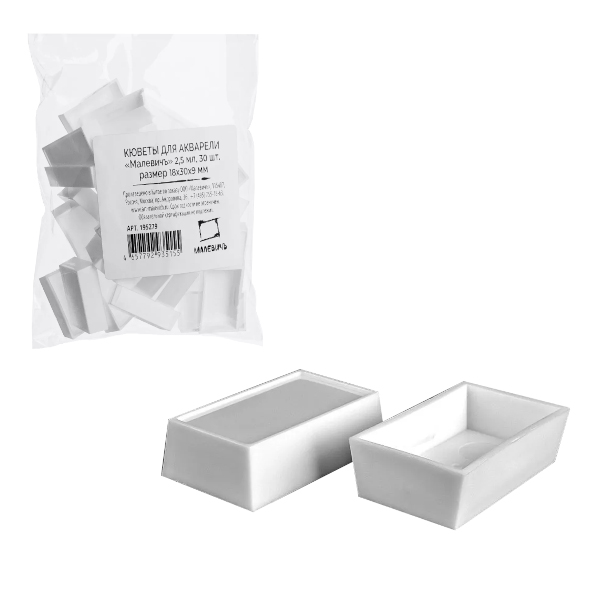 Набор кювет для акварели 2,5мл, пластик, белый (30шт) 195279 Малевичъ