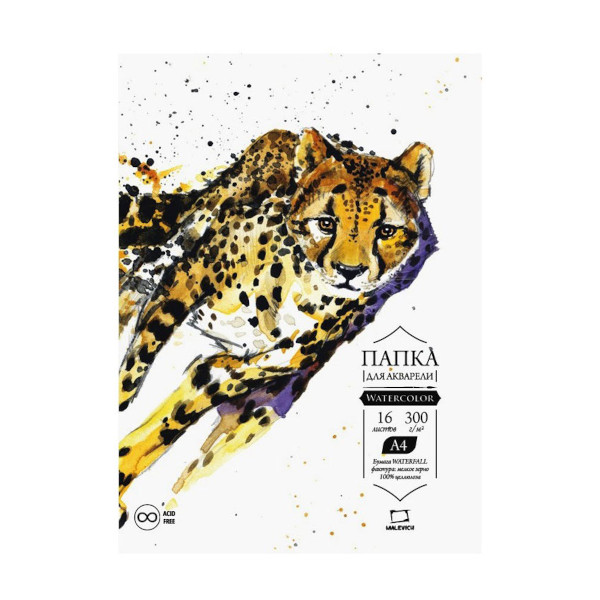 Папка для акварели "Waterfall" 300 г/м2, А4, 16л, 100% целлюлозы 402203 Малевичъ