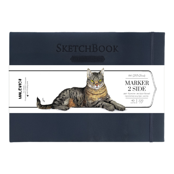 Скетчбук для маркеров А4 40л, 220г/м2, сшивка, синий 401148 Малевичъ