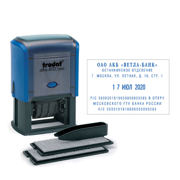 Штамп 4-стр. самонаборный 47 * 18мм Trodat 4912 синий 2 кассы символов 6005/6006