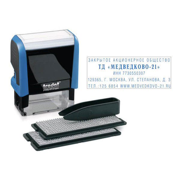 Штамп 3-стр. самонаборный 38 * 14мм Trodat 4911 синий 1 касса букв 6005