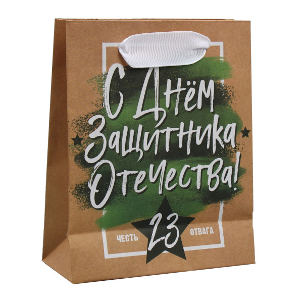 Пакет бумажный 15*12*5,5см "С 23 февраля" крафт 4515270 Дарите Счастье