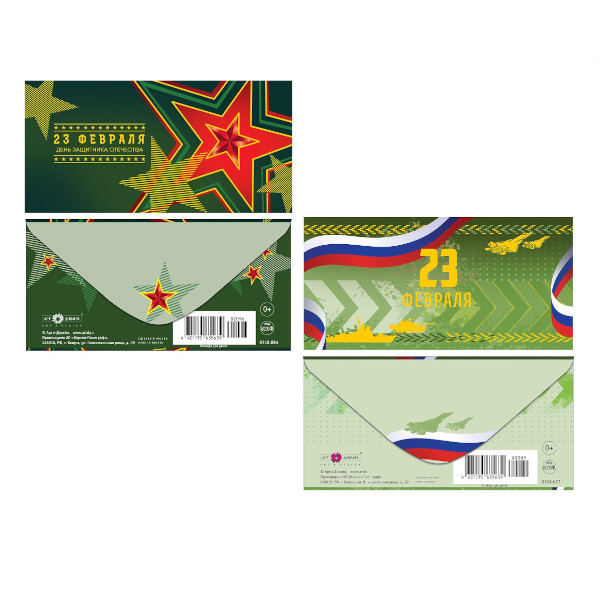 Открытка-конверт "23 февраля. День защитника Отечества. Звезда" 8,3*16,7см 0318.084/077 Арт Дизайн