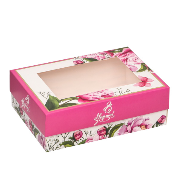 Коробка складная с окном 21*15*7см "Весенние пионы" 9327118 Upak land