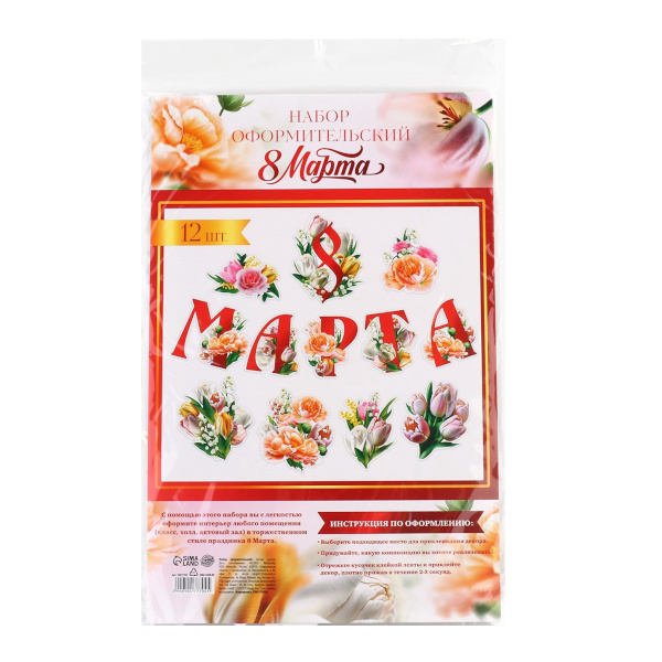 Набор для декорирования "8 марта" 12 элементов, 20*30см 10477704 Страна Карнавалия