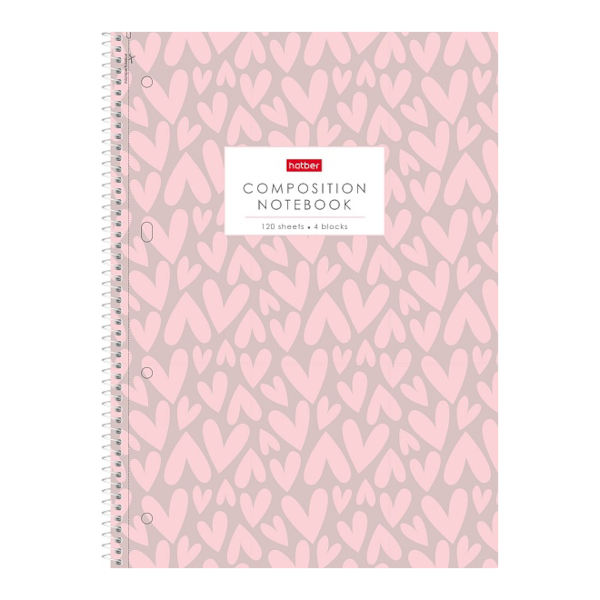 Тетрадь 120л А4 клетка/спираль "Love is..." тв. обл., рис., перф. 120Ттр4В1сп_35702 Hatber