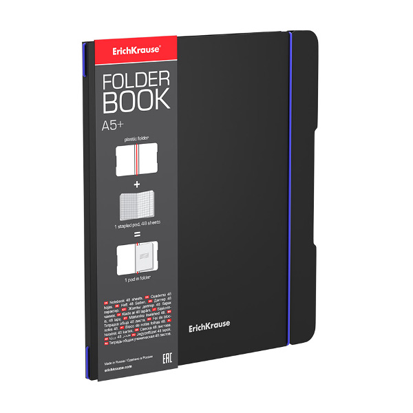 Тетрадь 48л А5+ клетка "FolderBook Classic" съем. пластик, черный 48016 Erich Krause
