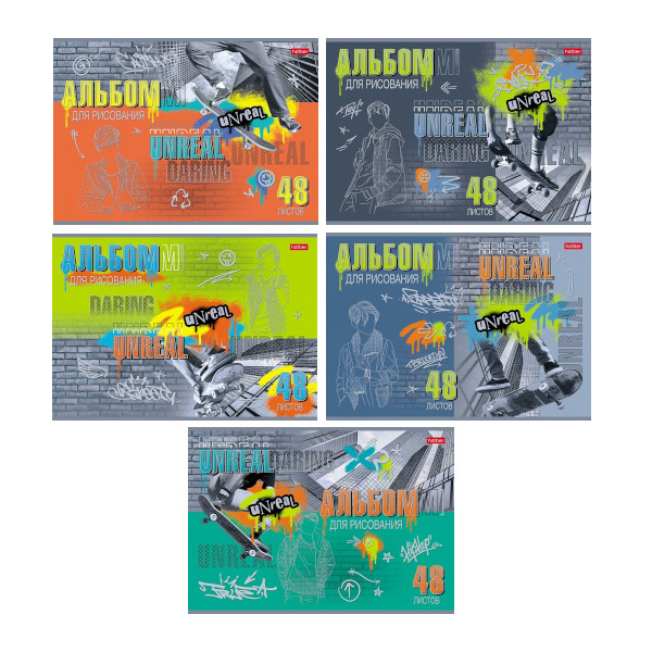 Альбом для рис 48л А4 "Нереально смелый" 100г/м2, скоба, ассорти 48А4лофВ Hatber