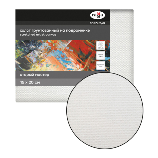 Холст грунтованный на подрамнике (15*20см) "Старый мастер" 370г/м2 мелкое зерно, лен 100920201 Гамма