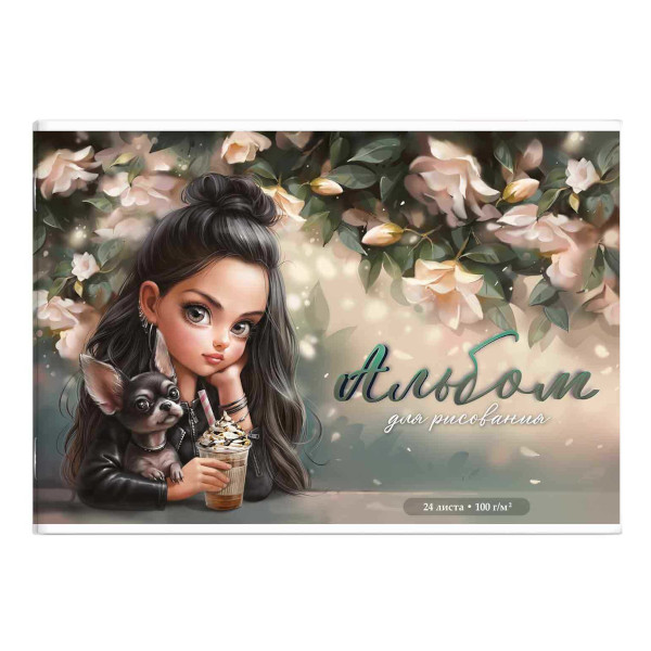 Альбом для рис 24л А4 "Мулатка с собачкой" 100/м2, скоба 69866 Феникс+