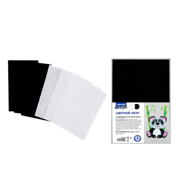 Набор фетра декоративного "Черный/белый" А4, 8л, 2цв, 1мм M-20239 MAZARI ТМ