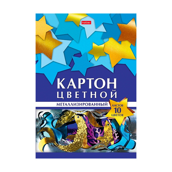 Картон металлизированный А4 10л/10цв Hatber "Геометрия цвета.Аквариум" 10Кц4мт_23731
