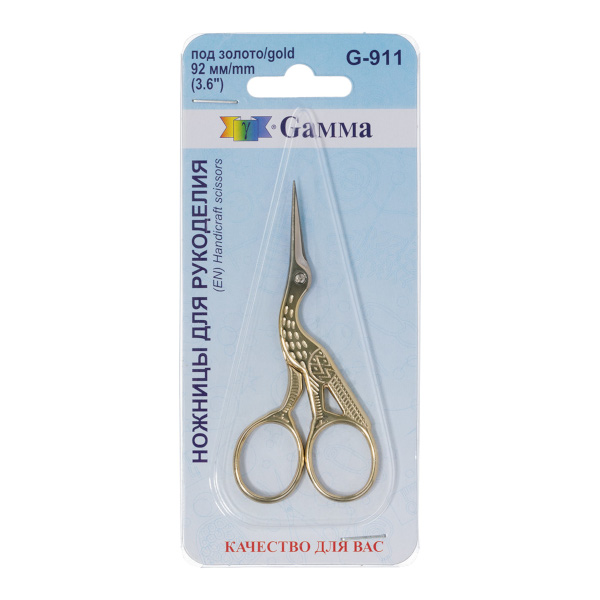 Ножницы для рукоделия 9,2см Gamma, сталь, под золото G-911