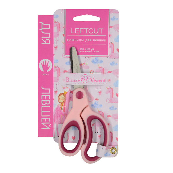 Ножницы для левшей 13,2см Bruno Visconti "LeftCut" асимметр., прорез., розовый 60-0034/01