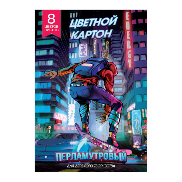 Картон мелованный перламутровый А4 8л/8цв Феникс+ "Игра в реальности" 66257