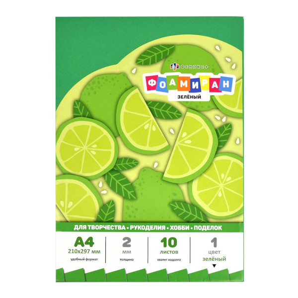 Пористая резина (фоамиран) А4 "Зеленый" 10л/1цв, 2мм 65991 Феникс+