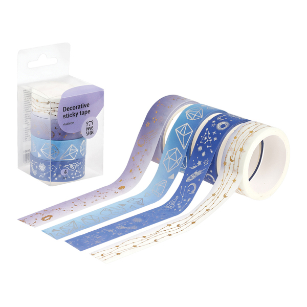 Набор клейких лент 15мм*3м, бел/сирен/голубез син "Galaxy" 4шт MS_36905 MESHU
