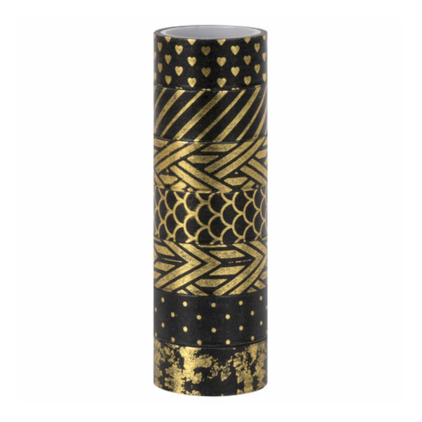 Клейкие ленты для декора "ЧЁРНОЕ ЗОЛОТО" 15мм*3м, 7цв, рисовая бумага 661714 ОСТРОВ СОКРОВИЩ