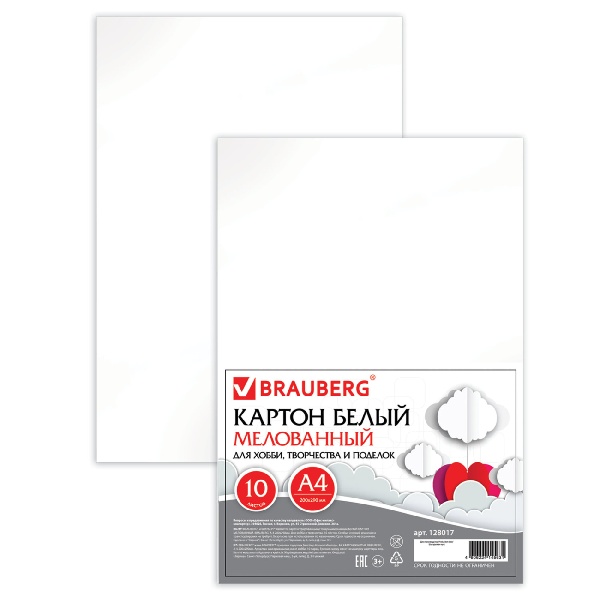 Картон белый А4 10л мелованный, двустронний Brauberg 128017