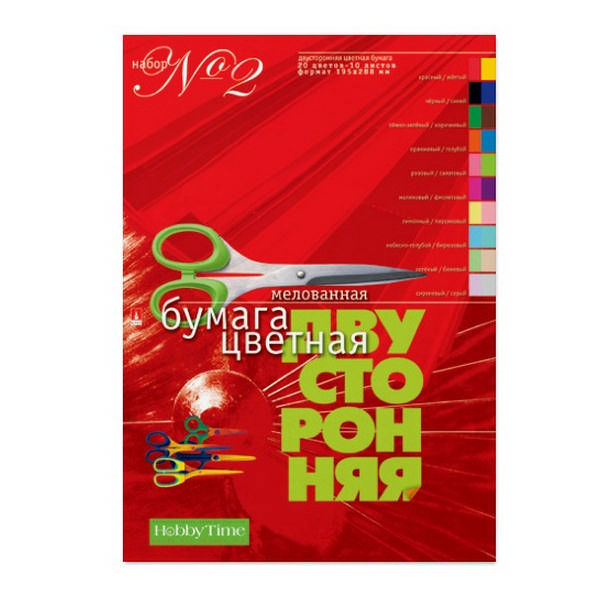 Бумага цветная мелованная А4 двустор. 10л/20цв, папка 11-410-39 HOBBY TIME